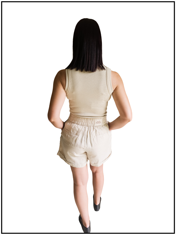 The Capri Linen Shorts feature a comfortable high-rise elasticated waistband, with a flattering relaxed fit through the leg. The clean lines and natural texture of the linen offer a polished yet laid-back aesthetic.