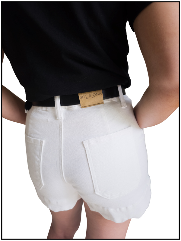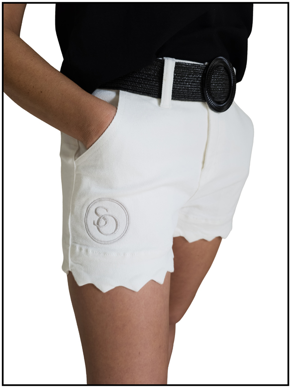 The Luminance Scallop Short in crisp white offers a tailored, figure-flattering fit with a structured high-rise waist. The simplicity of the clean silhouette is accented by the unique, meticulously cut scalloped hemline, transforming this staple piece into a sophisticated foundation for any ensemble.