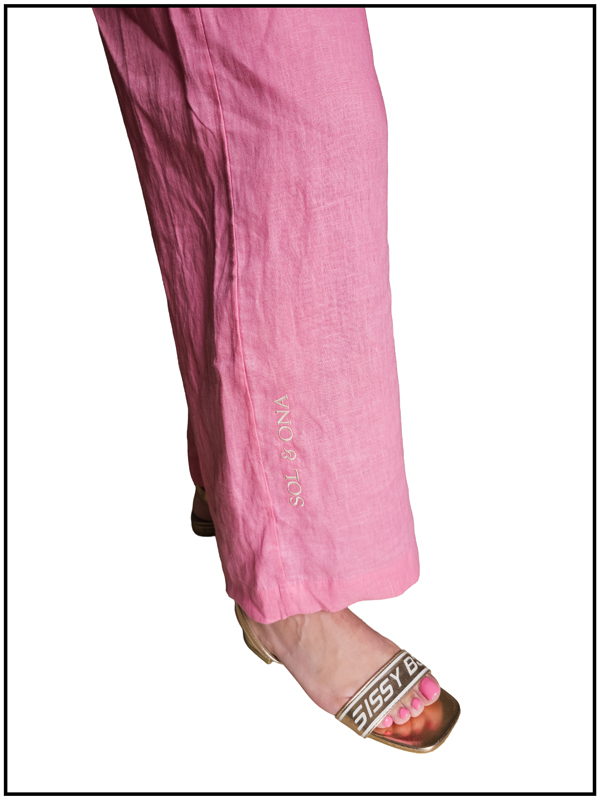 The Riviera Wide Leg Linen Trosuer features a flattering, high-rise silhouette with a comfortable elasticized waistband, ensuring a perfect fit and a smooth drape. The relaxed, flowing cut offers beautiful movement and a timeless, breathable and resort-wear feel.